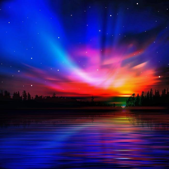 Aurora Borealis and sunset