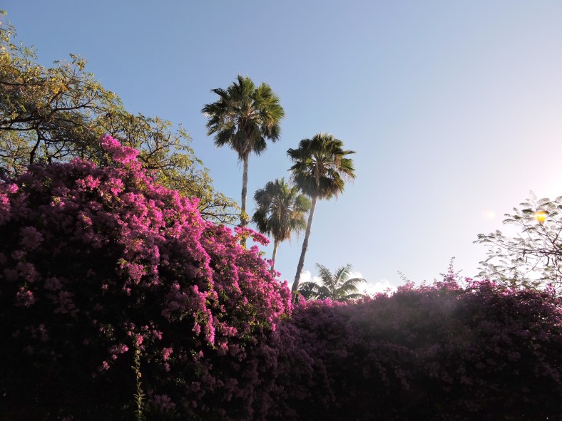 Bougainvillea with Palm Trees
